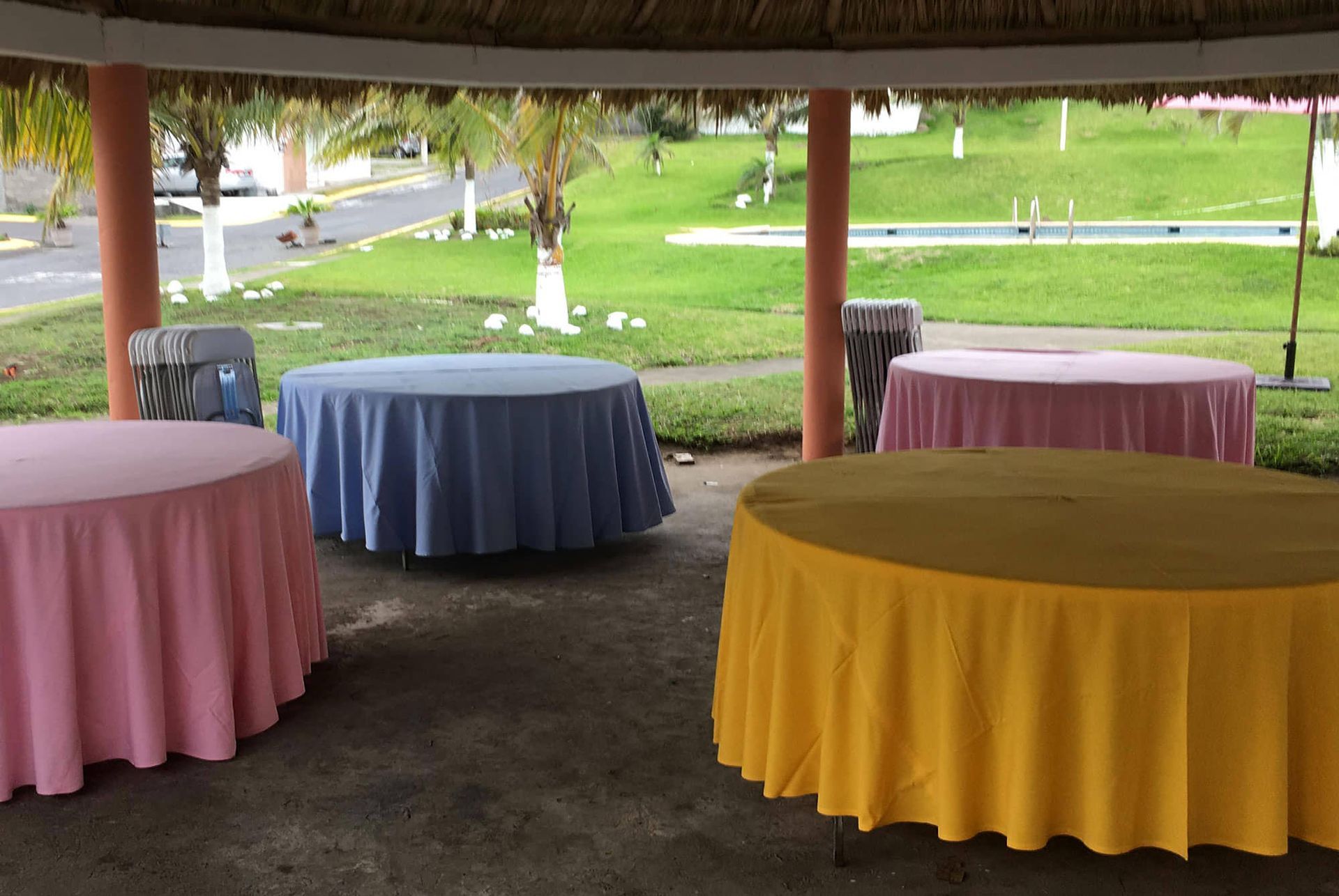 La renta de manteles para eventos es esencial para transformar cualquier celebración en una experiencia visualmente atractiva. Contamos con una amplia variedad de opciones para adaptarnos a tus necesidades. Nuestros manteles redondos y cubre manteles redondos y cuadrados ofrecen una elegancia clásica, mientras que los manteles rectangulares son perfectos para banquetes y mesas largas. Los cubre manteles de color permiten personalizar el ambiente, y los fundones para tablón añaden un toque sofisticado.