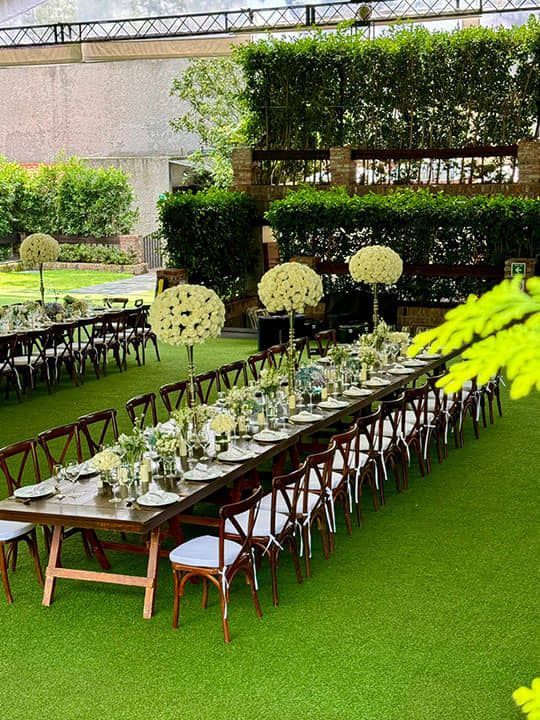 Nuestra variedad de mobiliario para eventos asegura que cada celebración tenga el estilo y la comodidad necesarios. Rentamos mesas de todo tipo para crear espacios funcionales y acogedores para los invitados. Además, contamos con siete tipos de sillas en diferentes materiales, cada una ideal para cada gusto y necesidad.