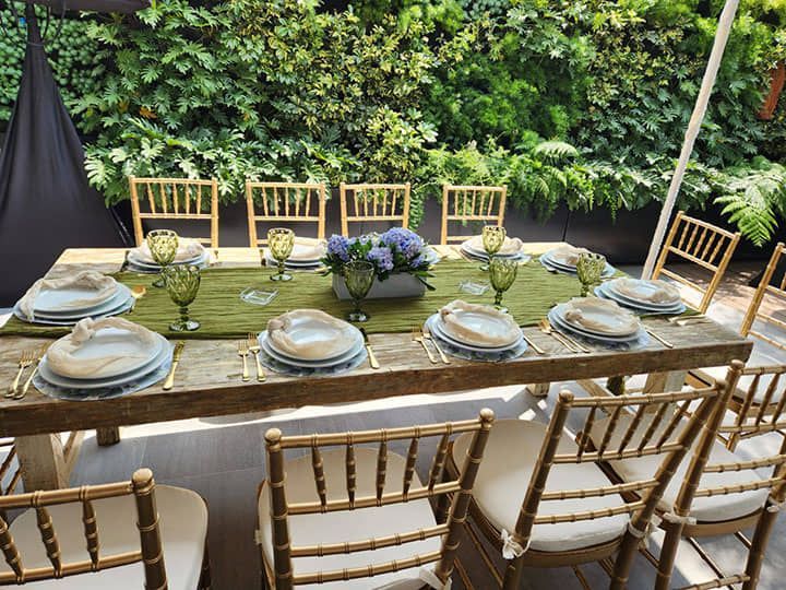 Además de nuestra variedad de mantelería, ofrecemos un extenso stock de mobiliario,